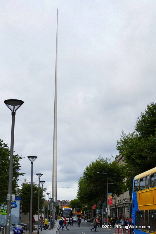 About 480 feet/145 meters north of Mr. O’Brien stands a 394-foot/120-meter stainless steel needle. This is the Spire of Dublin, which was completed on 21 January 2003. Not hugely popular when it was first proposed, it ‘in’spired (see what I did there?) several less than flattering nicknames. Those included “The Stiletto in the Ghetto”, “The Spire in the Mire”, and my personal favorite as told to us by our Hop-On/Hop-Off guide, “The Stiffy on the Liffey” (referring to the nearby River Liffey):