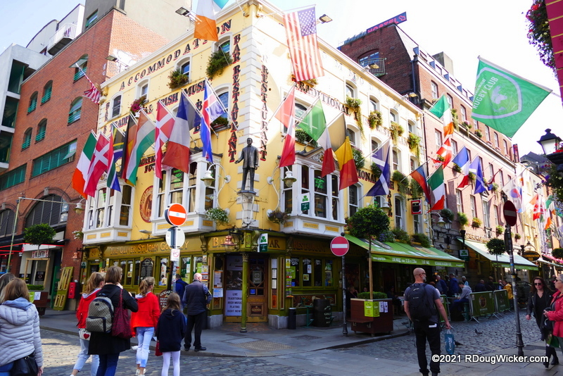 By now many of you are aware that both Ursula and I are avid fans of Hop-on/Hop-off busses. There’s not much better in most cities for getting one’s bearings and figuring out what one want’s to visit more in depth. So, after hoofing it about O’Connell Street Lower and a bite to eat we took our first Hop-on/Hop-off ride. Along the ride we passed beneath a foot bridge spanning market street that connects two structures at the Guinness Storehouse: