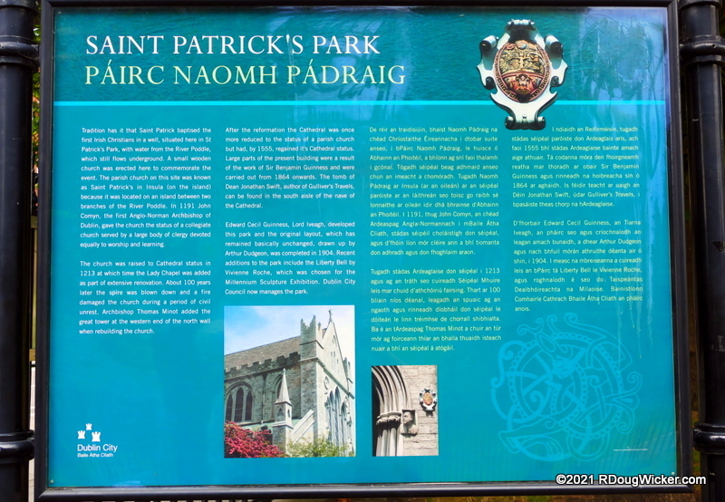 A recent addition to the grounds of St. Patrick’s is the Saint Patrick’s Park. The park was created through the largesse of Edward Guinness, 1st Earl of Iveagh, son of Sir Benjamin Lee Guinness.