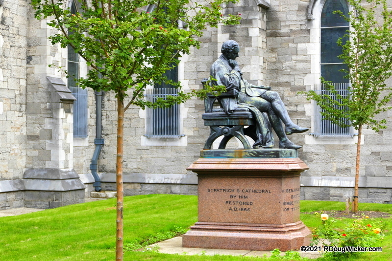 The 1860-1865 reconstruction was courtesy of Sir Benjamin Lee Guinness, Baronet, who is memorialized by this statue outside the church: