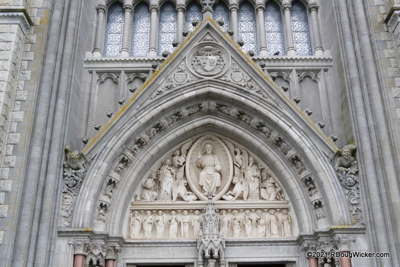 The exterior of St Colman’s is limestone, and the façade is filled with interesting details: