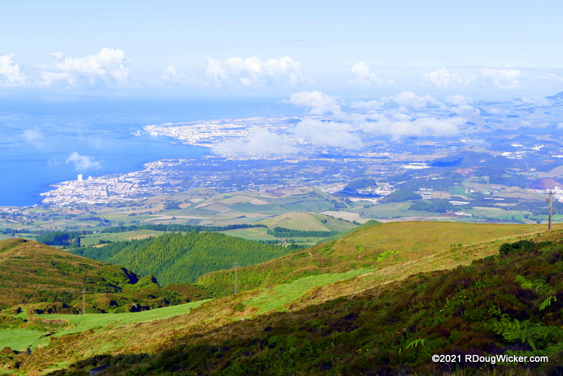We left Ponta Delgada behind, and as you’ll recall from Monday’s article, our van began some serious uphill climbing. We were headed into the clouds for a look at Lagoa do Fogo, which translates from Portuguese as “Lagoon of Fire”. Most English-speaking people call it “Fire Lake.” But before we would arrive there, we would be treated by some great vistas: