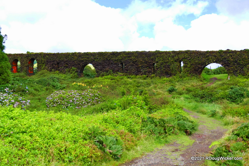 The aqueduct was a pleasant surprise, and only around three or four minutes west of the Coal Peak Viewpoint. The dilapidated structure is covered in green, and red paint inside the archways offers up a great contrast to the surrounding vegetation. Let’s move for a closer look: