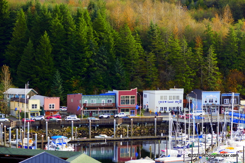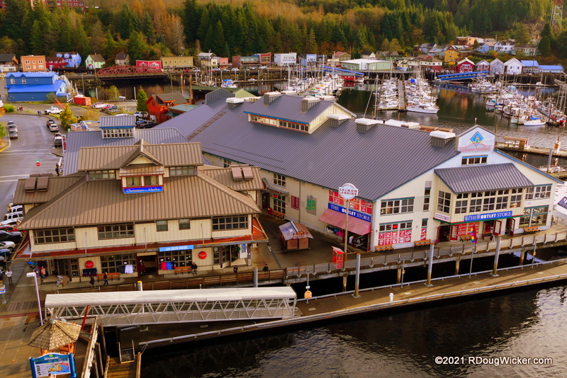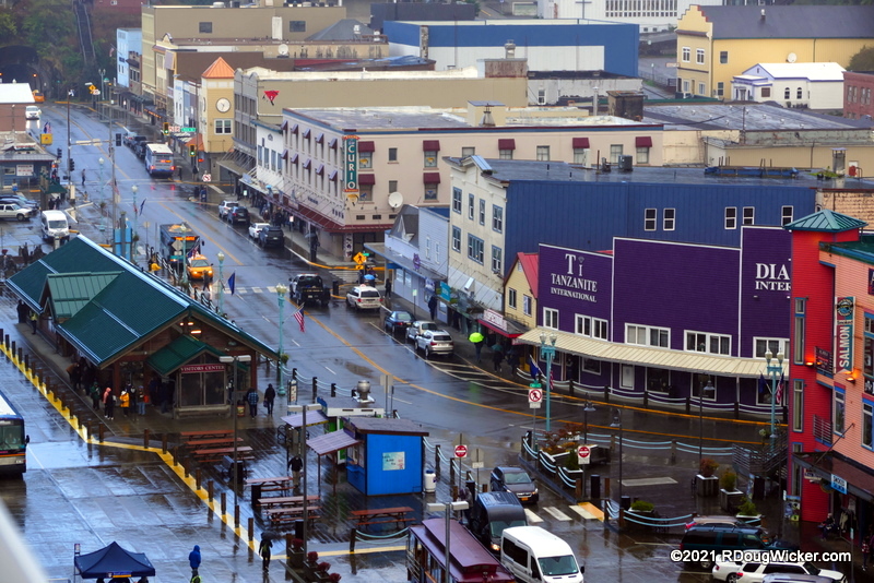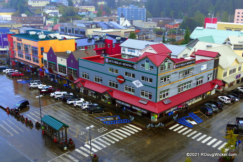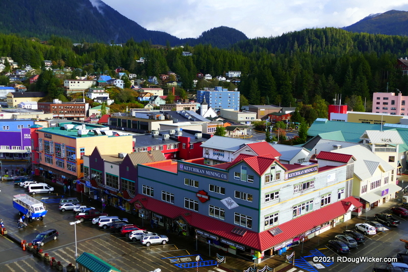 And since we had shifted to a balcony for Cruise 2 I took full advantage of sheltered picture taking from on high. Here is a Ketchikan panorama I took at 10:29 a.m.: