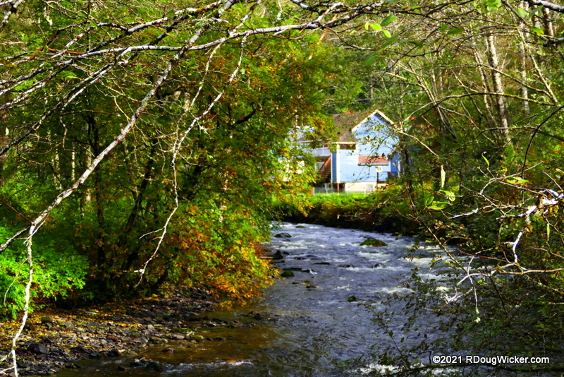 It didn’t take long for the bus to arrive, as the city runs buses at 15-minute intervals when the cruise ships are in town. From there it was about a short to the far east side of town. Where the bus drops you off the center will be to your right, but don’t miss the small stone bridge to your left before heading inside for this charming view along Ketchikan Creek: