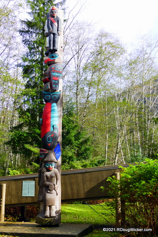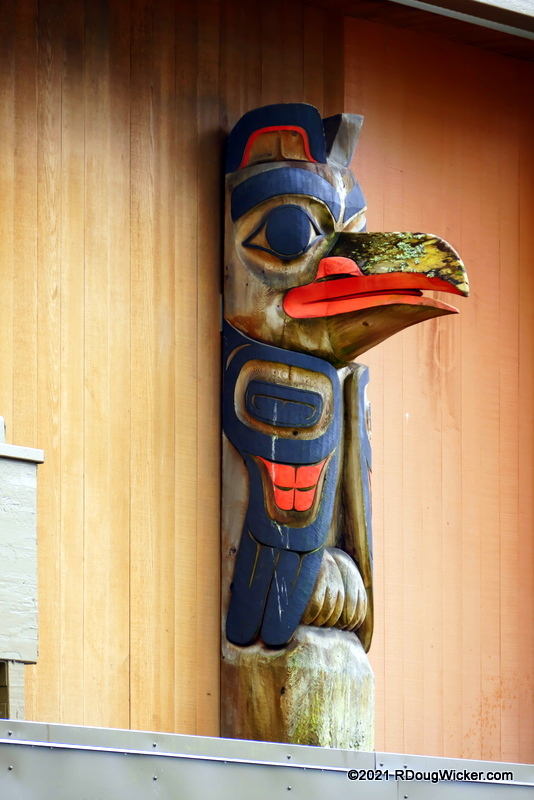Back toward the center is where you start encountering some very impressive totems, beginning with this sentinel alongside the center’s ramped entrance walkway: