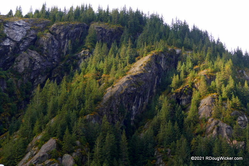 As with most of the stops we made on these off-season back-to-back cruises aboard Royal Caribbean’s Ovation of the Seas, we visited Endicott Arm twice. And at the end of Endicott arm lies a glacier we had not visited on previous Alaska Cruises — Dawes Glacier. On Cruise 1 our transit of Endicott Arm was cool, damp, and misty, and that’s what you’ll see this week and into next. Starting the middle of next week, the series will show you Endicott Arm and Dawes Glacier as they appeared in the sunnier conditions of Cruise 2. After my annual Christmas series for 20 through 24 December, I’ll be returning with one more week of images from Endicott Arm.