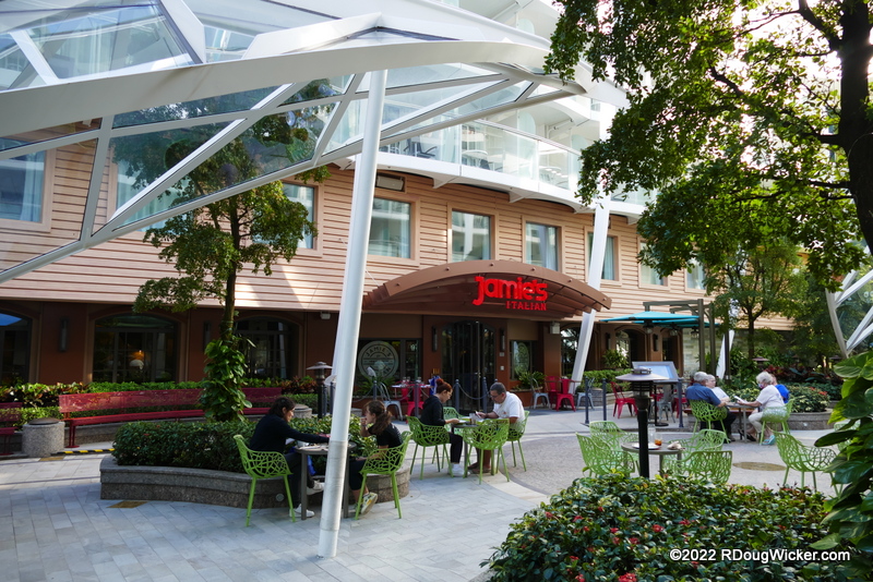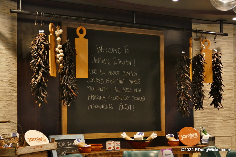 Now for restaurant reviews: Ursula and I were first introduced to a Jamie’s Italian during our back-to-back Alaska cruises beginning in late November (first of that series at: Cruising in the Age of Covid-19 — Part 1). We had no real interest in going to Jamie’s, but we ran into an old friend working aboard Royal Caribbean’s Ovation of the Seas. That person is Slavio Correia, who handles Park West Gallery auction events on various cruises. We’ve knows Slavio for many years, and it was wonderful running into him again. At any rate, Slavio insisted upon taking us to dinner at the Jamie’s Italian on Ovation, which is his favorite dining venue, so we were ready to try it again on Harmony.