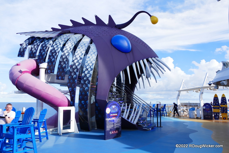 … to the Ultimate Abyss, a pair of dry slides that take you all the way from Deck 16 and dump you nine stories below onto the Boardwalk on Deck 6: