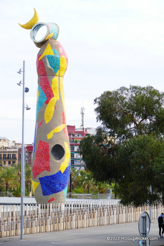 We’ll begin with a piece of statuary from famed Catalan painter and sculptor Joan Miró. This is Woman and Bird on Carrer de Tarragona: