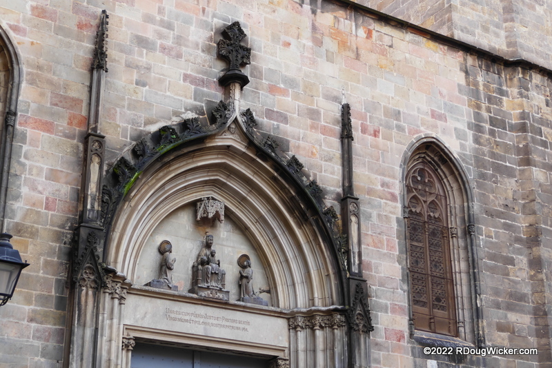 Today and Wednesday I’m not going to waste a lot of your time with text, as no matter where you turn in Barcelona’s Gothic Quarter you’re going to find some fun stuff to see and photograph. Take for instance the tiny door pictured below. I positioned Ursula next two if for size perspective. Beyond graffiti decorated doors, there’s just a lot of rich details in this area going back many, many centuries.