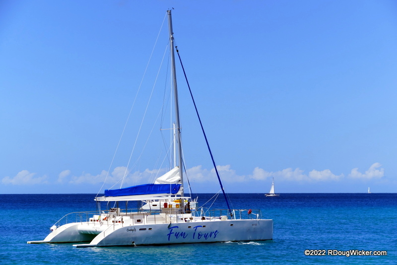 In late February Ursula and I boarded a series of flights that took us from El Paso to Dallas, to Miami, to Barbados. Once in Barbados we headed to the hotel as it was late, and we had a ship to catch the next day. That ship was Royal Caribbean’s ship Grandeur of the Seas, and it would take us on a fourteen-day journey to many destinations that Ursula and I had yet to visit in the Southern Caribbean. Our first stop would be in the Grenadines on the island country of Saint Vincent. Here, Covid protocols were quite strict. No one was allowed off ship unless they were part of a tour, so off we went on a catamaran adventure that would take us to another nearby island.