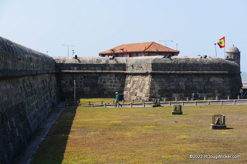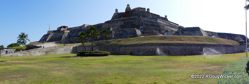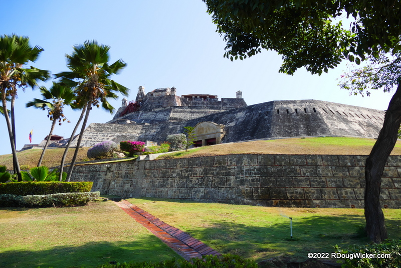 Exiting Port Oasis and Park Cartagena, Ursula was in the shopping mood for a cheap tour. The tour operators there were on the expensive side, so we passed farther along. Lo and behold, the price dropped considerably. We were soon on a large, comfortable bus with many fellow passengers on a three-hour tour (no Gilligan’s Island jokes, please) at a fraction of the previously quoted prices. Our first stop was the gargantuan Castillo de San Felipe de Barajas: