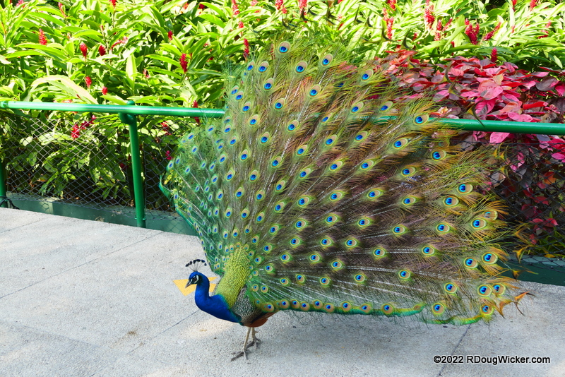 Cartagena, Columbia has a rather unique cruise terminal. Exiting the ship you enter Port Oasis, which in addition to the usual tourist shopping, also has an extensive zoo area called Park Cartagena. The emphasis was on local birds. For instance, peacocks roamed freely everywhere: