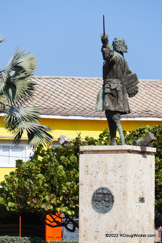 In front of the castle is a monument to Blas de Lezo. This poor chap earned quite the reputation, and in so doing he lost his left eye, leg, and hand, and the use of his right arm. All this is depicted in the statue honoring him: