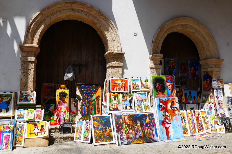 My fault, as I had also wasted a few moments to snag this shot of colorful art being hawked directly across the street: