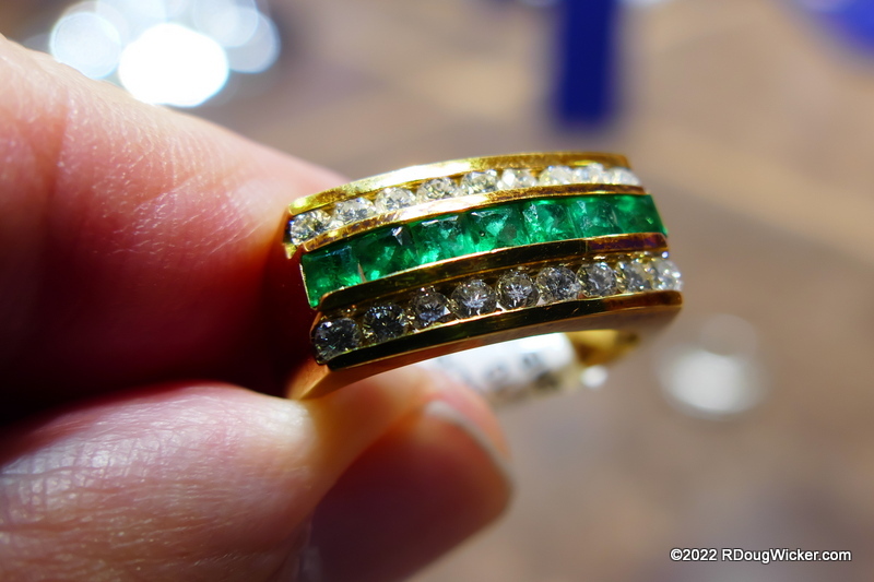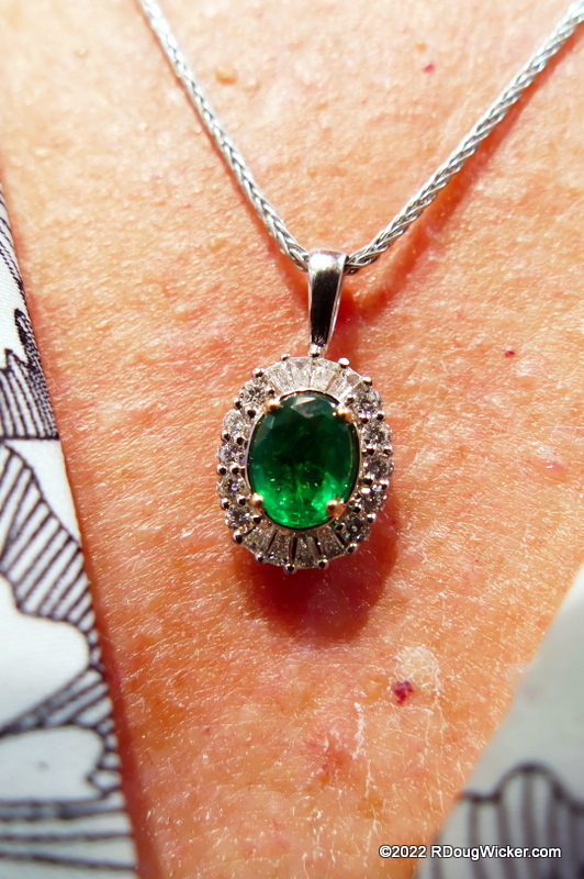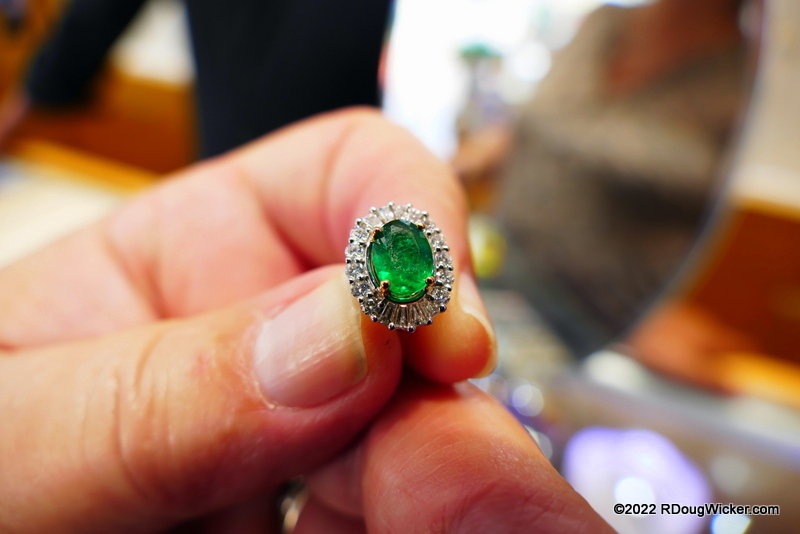 The emeralds had color, depth, were relatively clear, and as a bonus they were haloed by a tastefully arranged complementing ring of ten round and eight trapezoid diamonds. Quite the quandary, until Max presented a solution. Max offered to break the set and at no additional cost set one of the earrings as a pendant. Astonishingly, he held to that no-cost pledge even after I negotiated a better price. He asked what I wanted to pay, and to my shock and amazement he accepted my first offer, which I thought was on the lowball side.