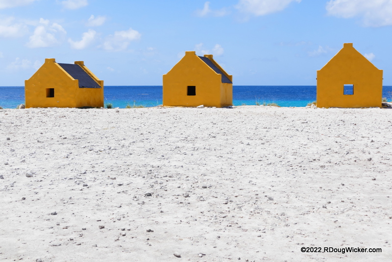 About 1.8 miles/2.9 kilometers south of the Salt Pier lies a tragic reminder from the Caribbean’s past dating from 1850. The stone huts below aren’t tall enough inside to allow one to stand upright. The small doorways (see below) require you to crawl to gain entrance. Yet these structures housed up to six slaves, who worked the salt ponds to the north.