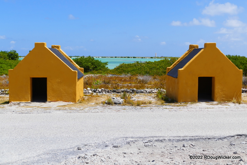 About 1.8 miles/2.9 kilometers south of the Salt Pier lies a tragic reminder from the Caribbean’s past dating from 1850. The stone huts below aren’t tall enough inside to allow one to stand upright. The small doorways (see below) require you to crawl to gain entrance. Yet these structures housed up to six slaves, who worked the salt ponds to the north.