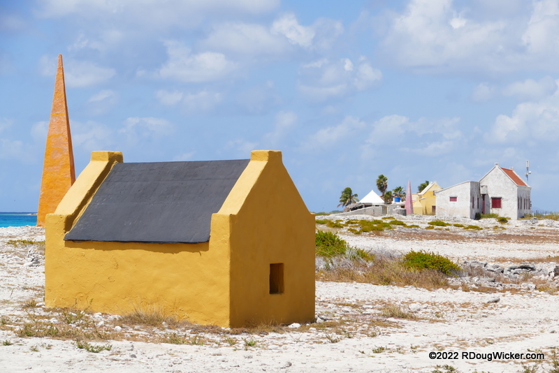 The obelisk pictured below is one of four that were constructed to guide ships. They were color coded — red, white, blue, and orange. Ship captains would view a colored flag flying from the fort in Kralendijk, then sail to the correspondingly colored obelisk to pick up their salt load.