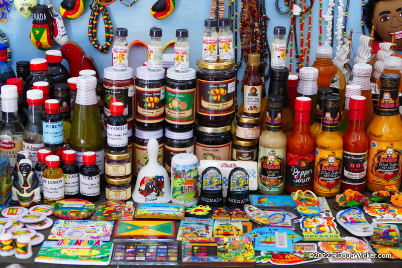 So, we climbed in Garfield’s chariot and took off into the Grenada’s interior. Deep into the interior, as we climbed uphill toward some waterfalls, Garfield took us to a spice shop. After all, we are on the Spice Isle, right? Here we have a sampling: