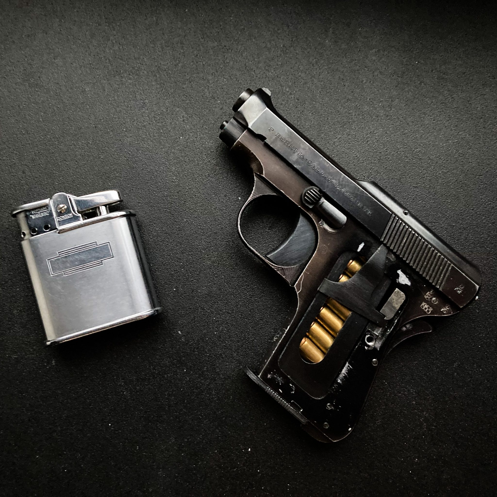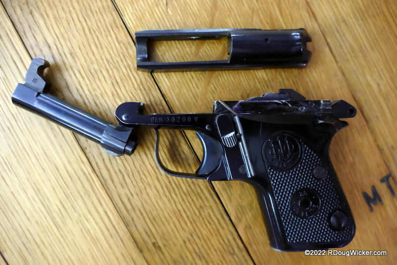 So, if not the 950 or 950 B, what Beretta did Ian Fleming have in mind? What “flat .25 Beretta automatic” has a traditional recoil spring incorporated into the slide that would allow one to operate it with the grip panels removed? That’s easy. We’re left with the Beretta 418, which went into production in 1936 (1919 if you include the earlier design designations) and continued to run concurrently with 950 production until at least 1958.