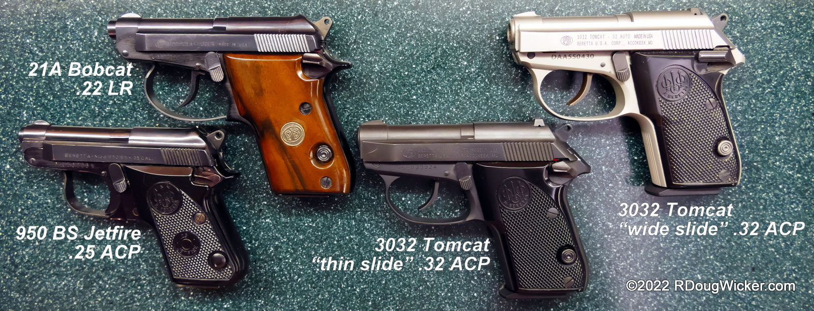 - caliber: .22 Short (Minx) and .25 ACP/6.35mm (Jetfire)