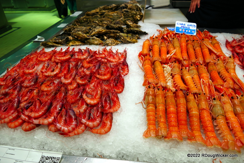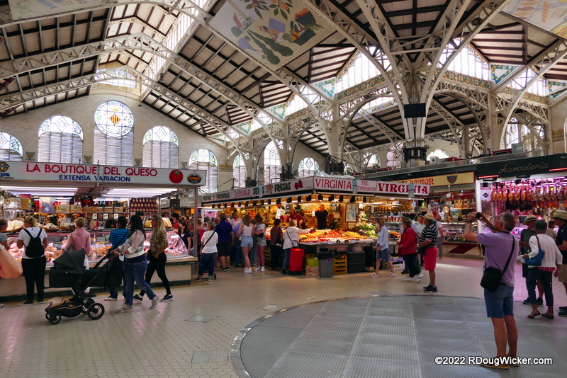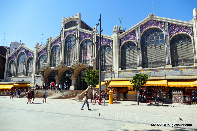 Everybody loves a little shopping. And if you’re Ursula, you’re enamored with foreign food markets. Doesn’t make any difference if it’s an outdoor farmers market, a Coop or Spar superstore, or a cavernous monstrosity housing myriad vendors selling everything from produce to hams to seafood to candies. In the case of Valencia, that last one describes Mercat Central de Valencia (Central Market of Valencia), an Art Nouveau hall of immense proportions located just southwest of the Silk Exchange. And, yes, when I say immense, I mean immense! Just take a gander at the exterior: