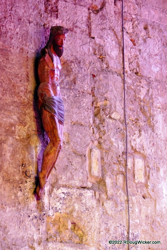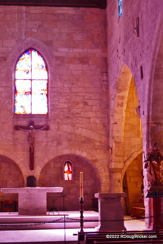 Don’t let the quaint exterior of Notre-Dame-des-Sablons Church deter you from stepping inside. We’ll take a look at that in a moment, but first I must apologize. The lighting inside Notre-Dame-des-Sablons is low and the color hideous. As such, I had to shoot in JPEG with the camera set in handheld night mode, which gave me adequate shutter speeds but made color correction almost impossible. Here’s an example of what I mean.