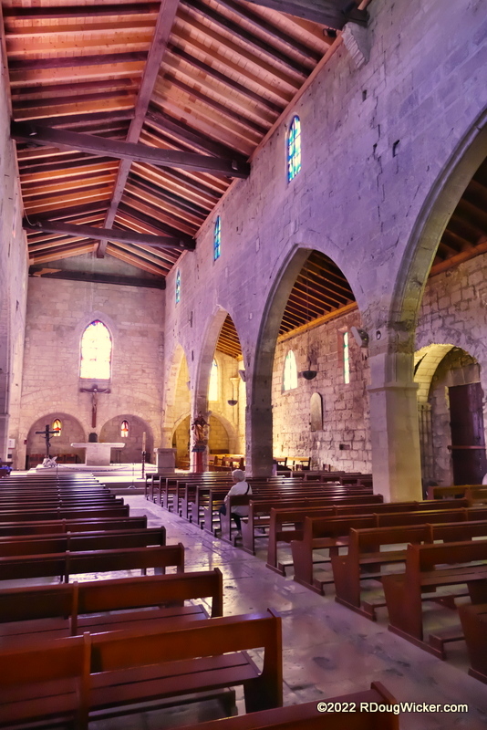 Don’t let the quaint exterior of Notre-Dame-des-Sablons Church deter you from stepping inside. We’ll take a look at that in a moment, but first I must apologize. The lighting inside Notre-Dame-des-Sablons is low and the color hideous. As such, I had to shoot in JPEG with the camera set in handheld night mode, which gave me adequate shutter speeds but made color correction almost impossible. Here’s an example of what I mean.