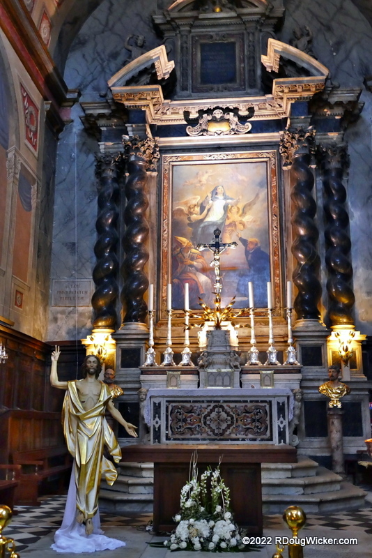 Today I present to you yet another of the three ABCs of European travel (Another Bloody Castle, Another Bloody Church, Another Bloody Cathedral). Old joke and, yes, I’m just kidding. Both Ursula and I just love these things. Today it’s another cathedral — Cathedral of Our Lady of the Assumption of Ajaccio, otherwise known simply as Ajaccio Cathedral. This structure was erected between 1577 and 1593 and is credited to famed Italian architect Giacomo della Porta. While the exterior may not appear all that imposing in comparison to other cathedrals I have shown you on these consecutive Vision of the Seas voyages, just step inside. Doing so will change your mind rather quickly.