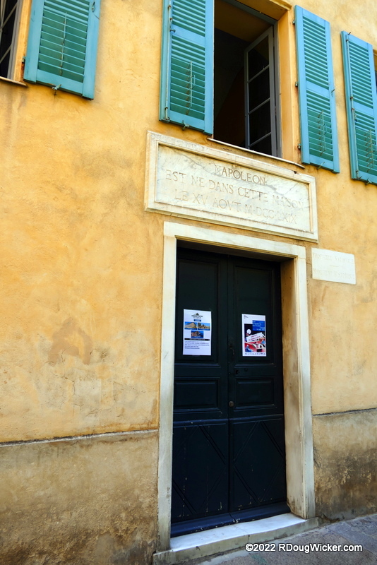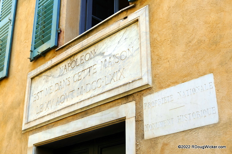 We’ve left behind Ajaccio Cathedral, headed north east along Rue Saint-Charles, and have arrived at Maison Bonaparte, the ancestral home of the Bonaparte family and the place of birth of Napoleon. It may not look like much, but it’s a busy destination. I had to wait out the throngs to get the shot you see above. And that marble plaque above the door? It reads in Corsican “NAPOLEON | EST NE DANS CETTE MAISON | LE XV AOVT M·DCC·LXIX,” which translates to “NAPOLEON | BORN IN THIS HOUSE | THE 15 AUGUST 1769.