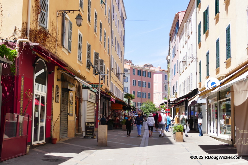 From Casa Buonaparte Ursula and I started slowly back to Vision of the Seas, but along a very indirect route that would take us well north of Plaza Foch. Here we found a pedestrian street that was fun to walk — Rue Cardinal Fesch. Lots of shops, street vendors, cafés, and restaurants in this area.