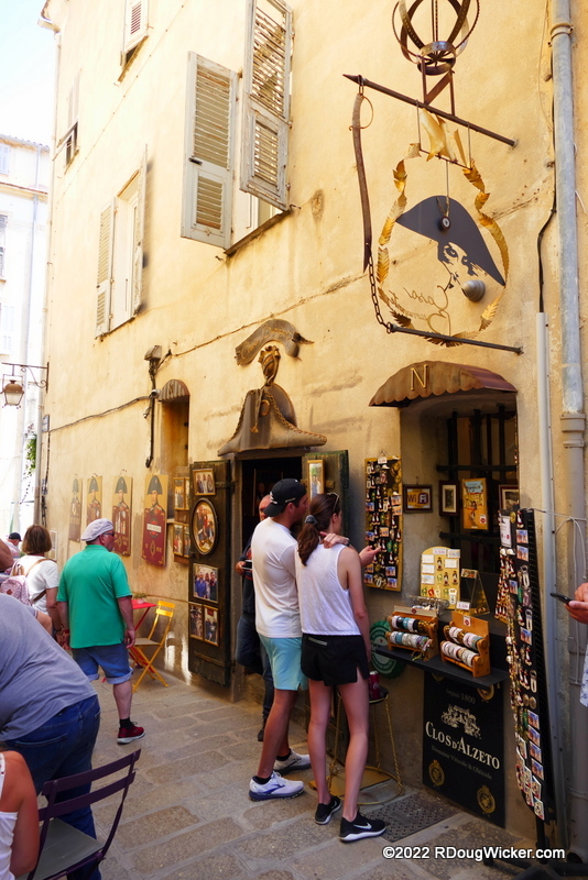 I don’t usually recommend souvenir shops. Indeed, I can’t remember ever having done so. But I’m making an exception today. This place was not only fun, it was cheap! I picked up an engraved, locking Corsican pocketknife with wood grips and a thumb stud for what I thought was a decent price. It turned out later that it was an exceptionally fair price. The same knife was going elsewhere for anywhere from 50% to 200% more. And it even came with a belt-loop sheath. But there’s more here than just souvenirs. Casa Bounaparte itself offers up some fun photographic subjects not found on the museum next door: