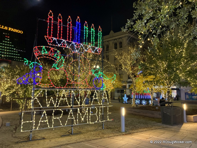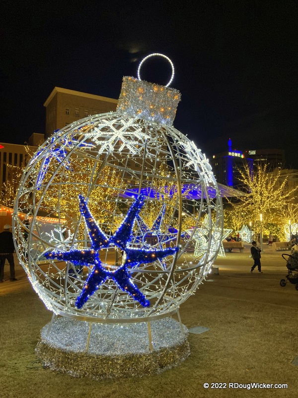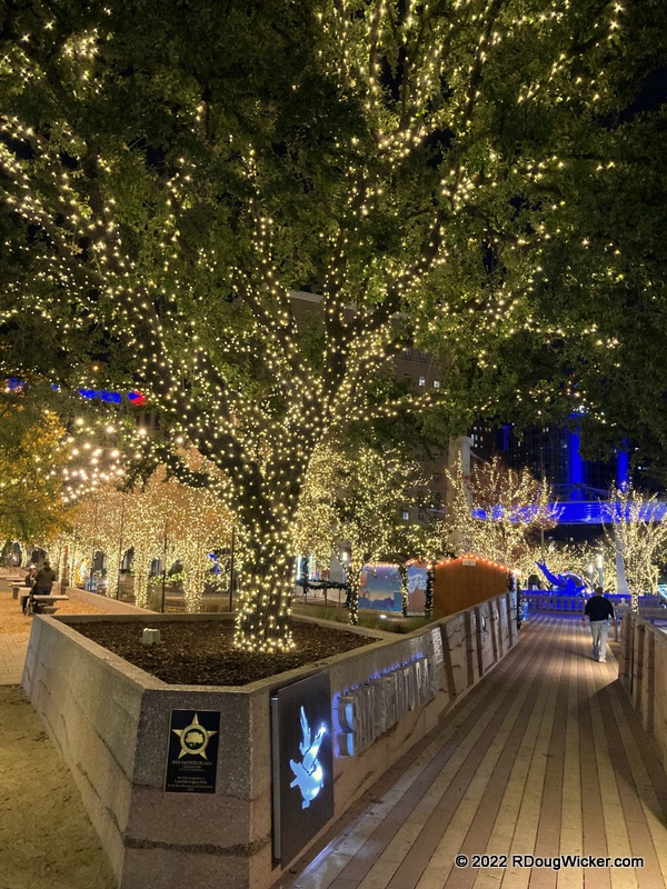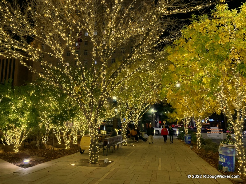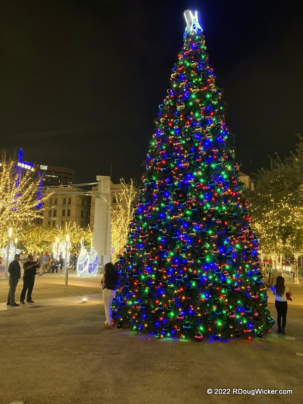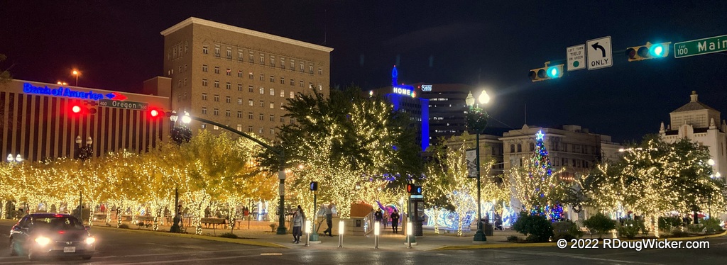 After dinner, and before our Broadway in El Paso reservations at the Plaza Theatre, we strolled through downtown’s San Jacinto Plaza to take in the annual Christmas lights: