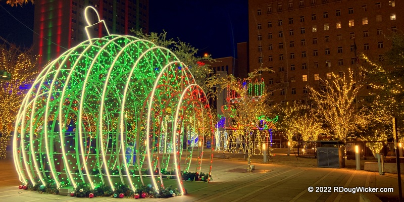 After dinner, and before our Broadway in El Paso reservations at the Plaza Theatre, we strolled through downtown’s San Jacinto Plaza to take in the annual Christmas lights:
