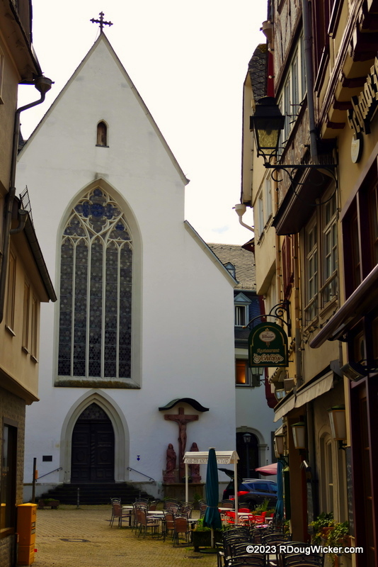 You may have noticed in my earlier Limburg an der Lahn photos that we were a bit gloomy. Well, we weren’t. The skies were. For instance, notice the cloudy conditions in the above photograph of Stadtkirche St. Sebastian (Limburg Town Church) on Bischofsplatz (Bishop’s Square). Fortunately, those conditions did not hold as the day progressed: