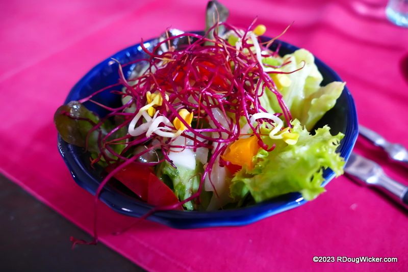 We then all three opted for variants of the schnitzel, which I will show momentarily. But first, here’s a sample of the salad that arrived with our main meal: