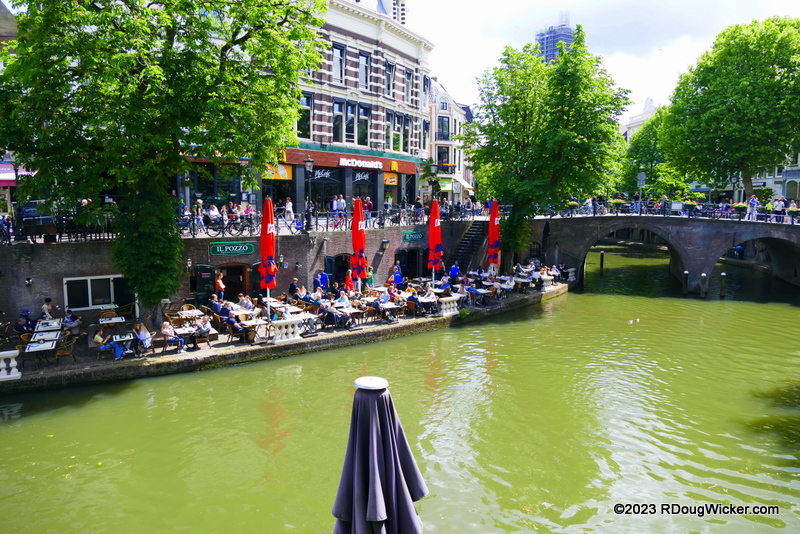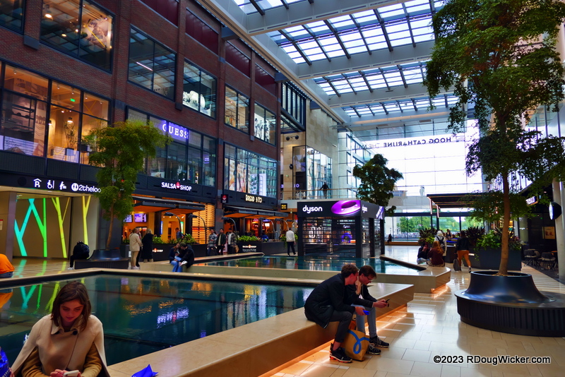 You may be wondering by now where we stayed in Utrecht, and would I recommend the accommodations. The answer is that we stayed in a shopping mall adjoining the Central Train Station (Station Utrecht Centraal, and I would heartily recommend the place. It’s mere minutes on foot to the city center and canals, and just a quick stroll to catch a train into Amsterdam. The hotel was quiet, comfortable, and affordable. Remarkably so considering its prime location. Elevators were a bit hard to come by, but you can’t have everything. Behold the Crowne Plaza entrance inside the Hoog Catharijne mall: