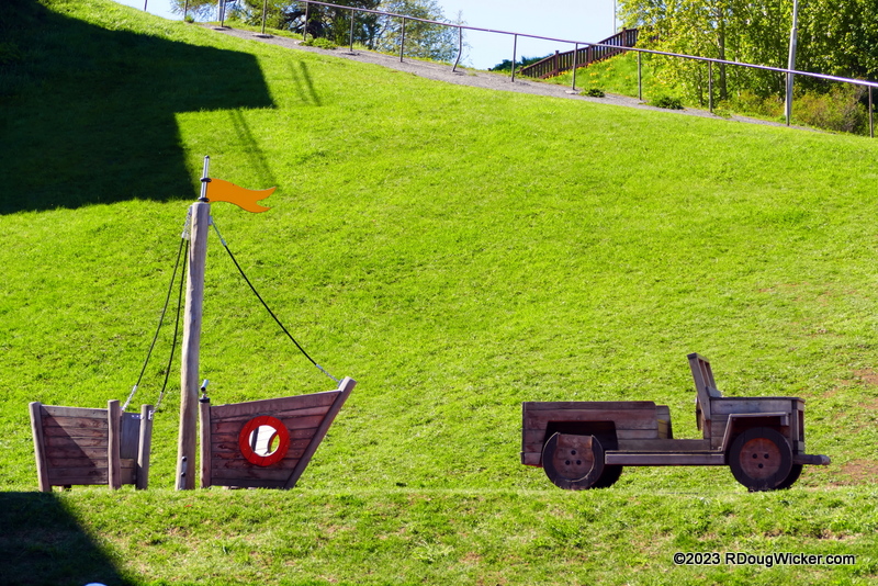 These sculptures are in a small, park-like area that includes a playground: