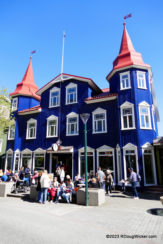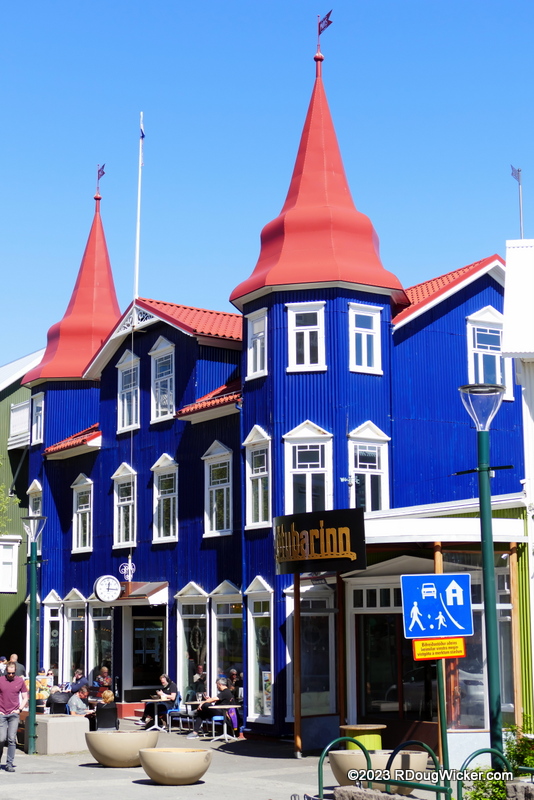 Continuing south on Hafnarstræti you’ll pass Akureyri’s main shopping district, which sports some fun architecture and bright colors: