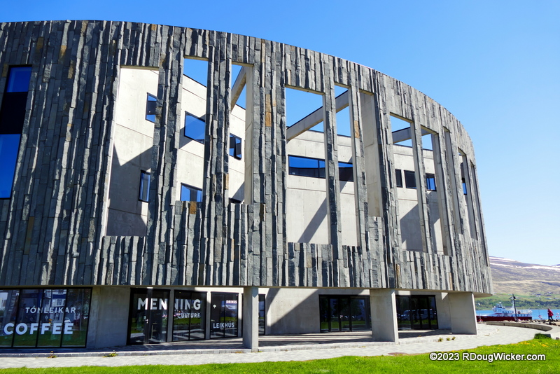 Today I present a photo gallery/slide show of other sights around downtown Akureyri and on the route back to the cruise terminal. The round building you will see below contains the Tónlistarskólinn á Akureyri (Akureyri Music School, Tourist Information Center, and the Menningarhúsið Hof (Hof Cultural and Conference Center).