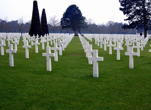 Those who followed my blogs on our most recent cruise foray will recall that we spent some time in the cool, damp drizzle at a cemetery in Normandy, France. That would be the Normandy American Cemetery and Memorial. It was a very moving experience, and I saw grown men reduced to quivering lips and teary eyes that day. If you’ve served in uniform then tears come easily while casting eyes upon this site. If you lost a friend or loved one who fell while in uniform, those tears come even easier.