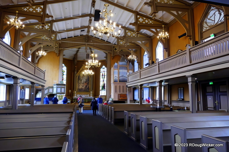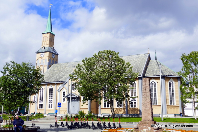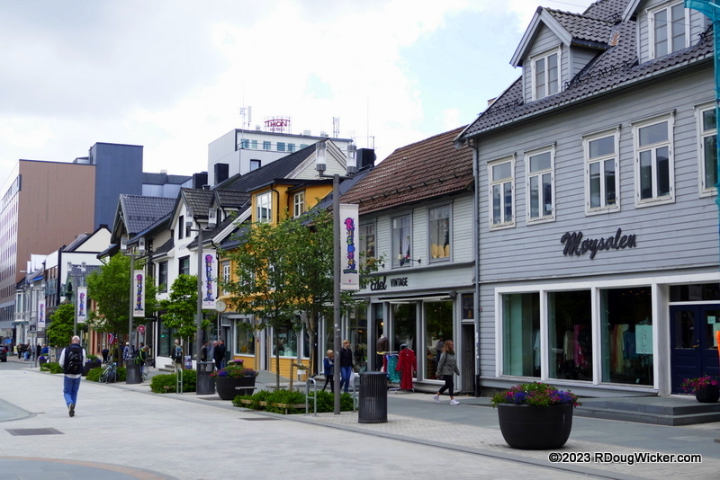 Any walk around Tromsø’s downtown area should include Tromsø Cathedral. It’s not as grandiose as other European cathedrals, especially those dating back hundreds of years ago, but it’s still worth a visit. This Gothic Revival church is fairly new, having been completed in 1861. It also follows the traditional “long church” floorplan typical of Norway. Well take a more in-depth look in a moment, but here’s the area immediately adjacent to the church, specifically along Storgata, which runs west of the church: