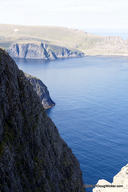 From this point look northeast for your first view of the North Cape Globe, which supposedly marks the northernmost point of Europe. In actuality, a rocky outcropping some 2.5 miles/4.2km to the west northwest is the true northernmost point.