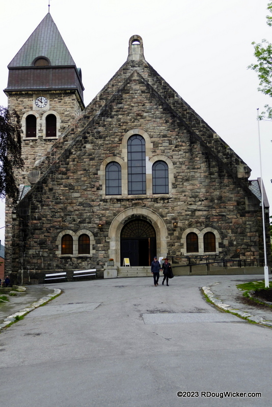 Ursula and I approached the church by leaving Kirkegata and turning north onto Prestegata. Here you’ll find the grounds of Ålesund Kirke (Ålesund Church), on which sits this World War II memorial: