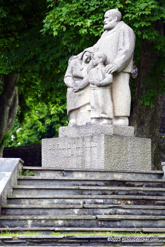 Ursula and I approached the church by leaving Kirkegata and turning north onto Prestegata. Here you’ll find the grounds of Ålesund Kirke (Ålesund Church), on which sits this World War II memorial: