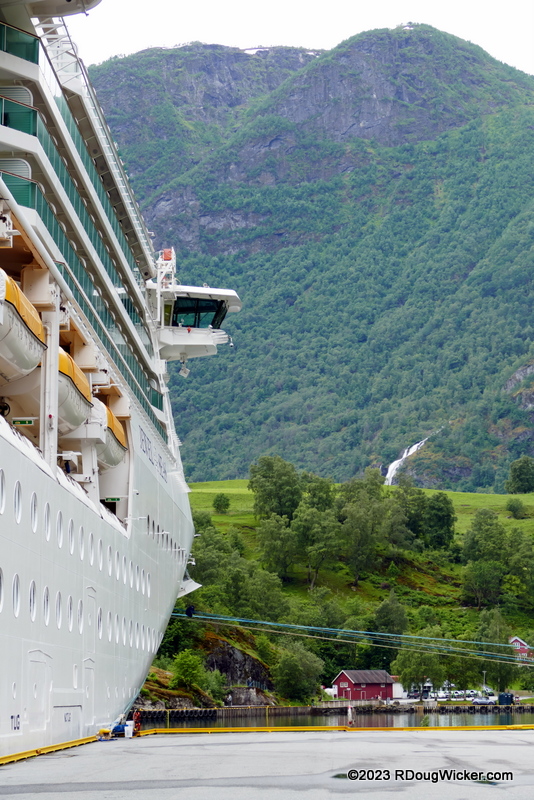 If Flåm appears small, that’s because it is. The full-time population was 350 back in 2013, and I doubt that it’s much more than that today. As such, Ursula and I decided to walk through Flåm quickly so as to make for another destination. More on that in a moment, but first some views of Flåm and the surrounding terrain as seen from Jewel of the Seas: