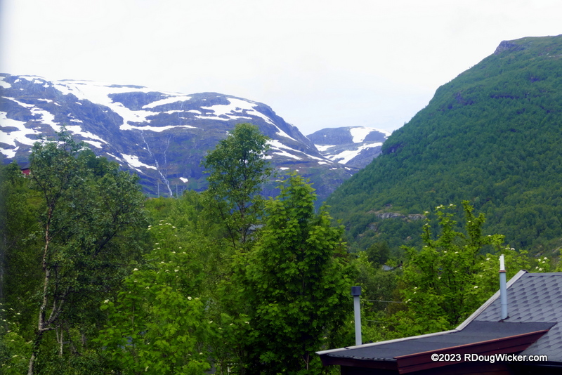 The Flåmsbana stop at Kjosfossen Station lasted perhaps ten minutes or so. There are no residents at this station. It’s merely a tourist stop to allow photos of he magnificent Kjosfossen waterfall. Today I’m going to show you the sights at the waterfall and the areas heading from the waterfall toward Myrdal Station. As with Monday’s article, today’s photos will be captioned with timestamps to give you a sense of the timeline.