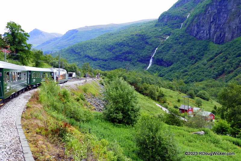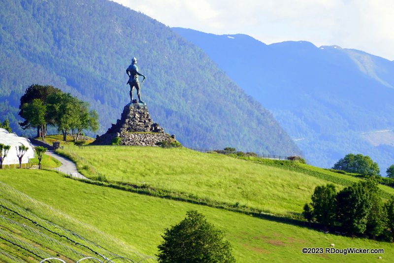 Norway’s largest and deepest fjord is Sognefjord. At approximately the midpoint of this fjord is the village of Vangsnes, which Jewel of the Seas passed after we departed Flåm for our next destination. Overlooking Vangsnes and Sagnefjord is a giant 74-foot/22.5-meter statue of Fridtjov the Bold. That is the statue you see in the image above. Here are today’s remaing Fun Photo Friday favorites of Flåm and Flåmsbana favorites:
